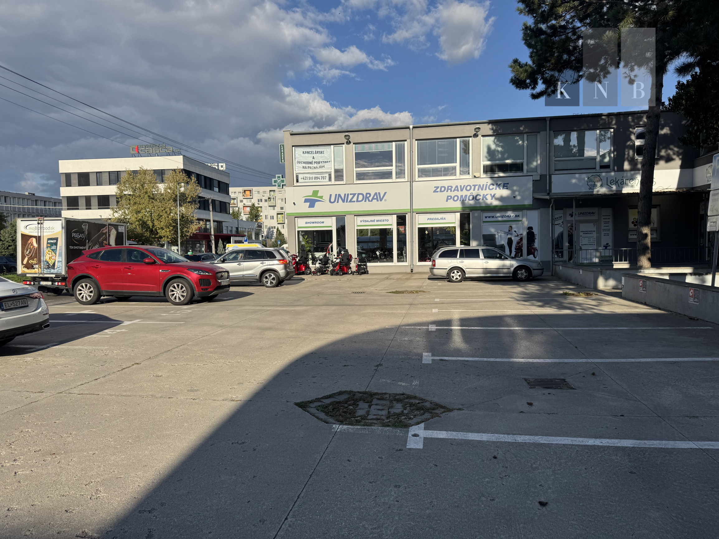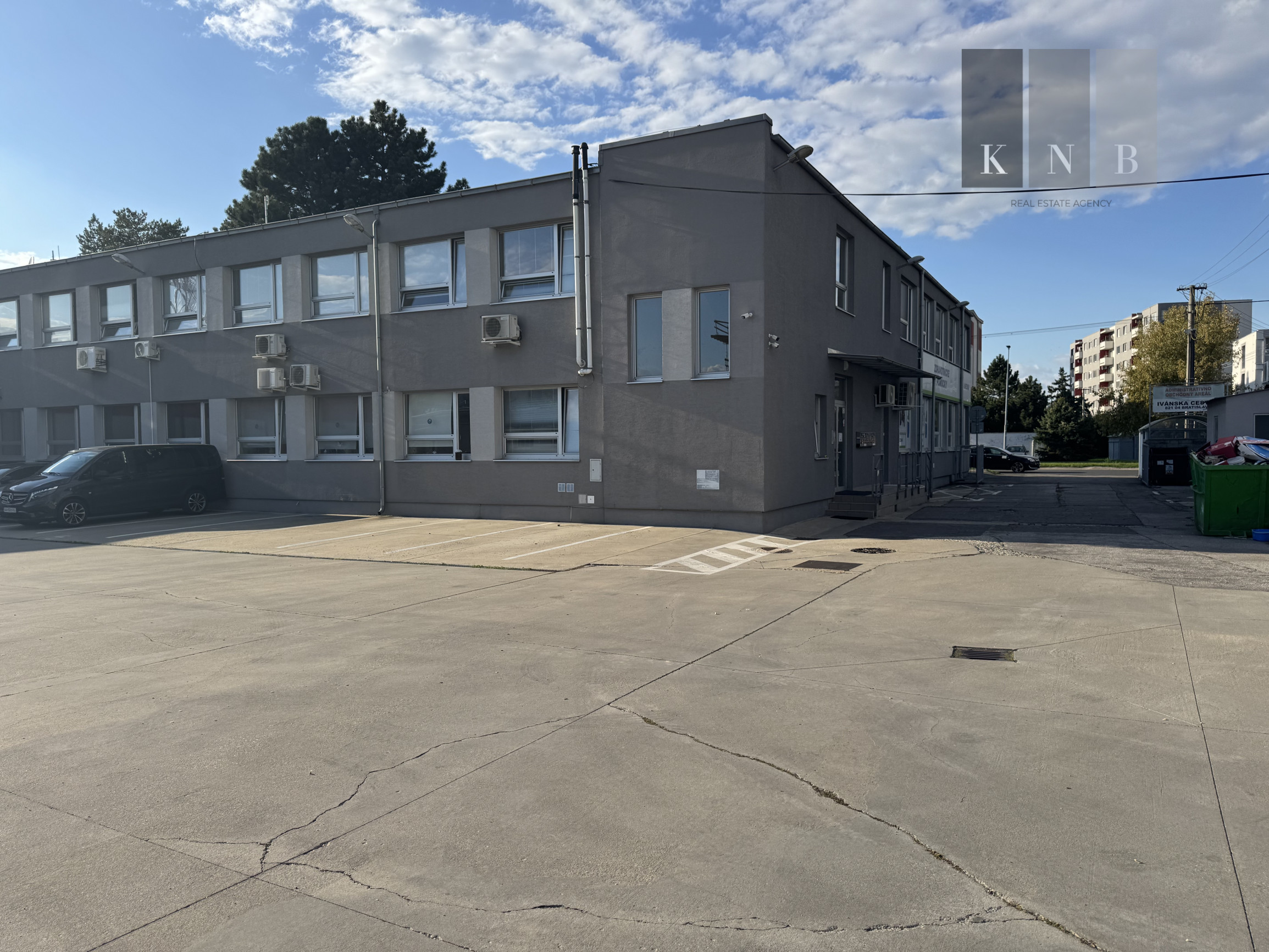 KNB Real Estate Agency offers for rent self-contained offices ranging from 10 m² to 44 m² on the busy Ivanská cesta street in Bratislava. The offices are located on the ground floor and 1st floor of the building, which is situated directly on Ivanská cesta, the main road connecting to the Bratislava city bypass.