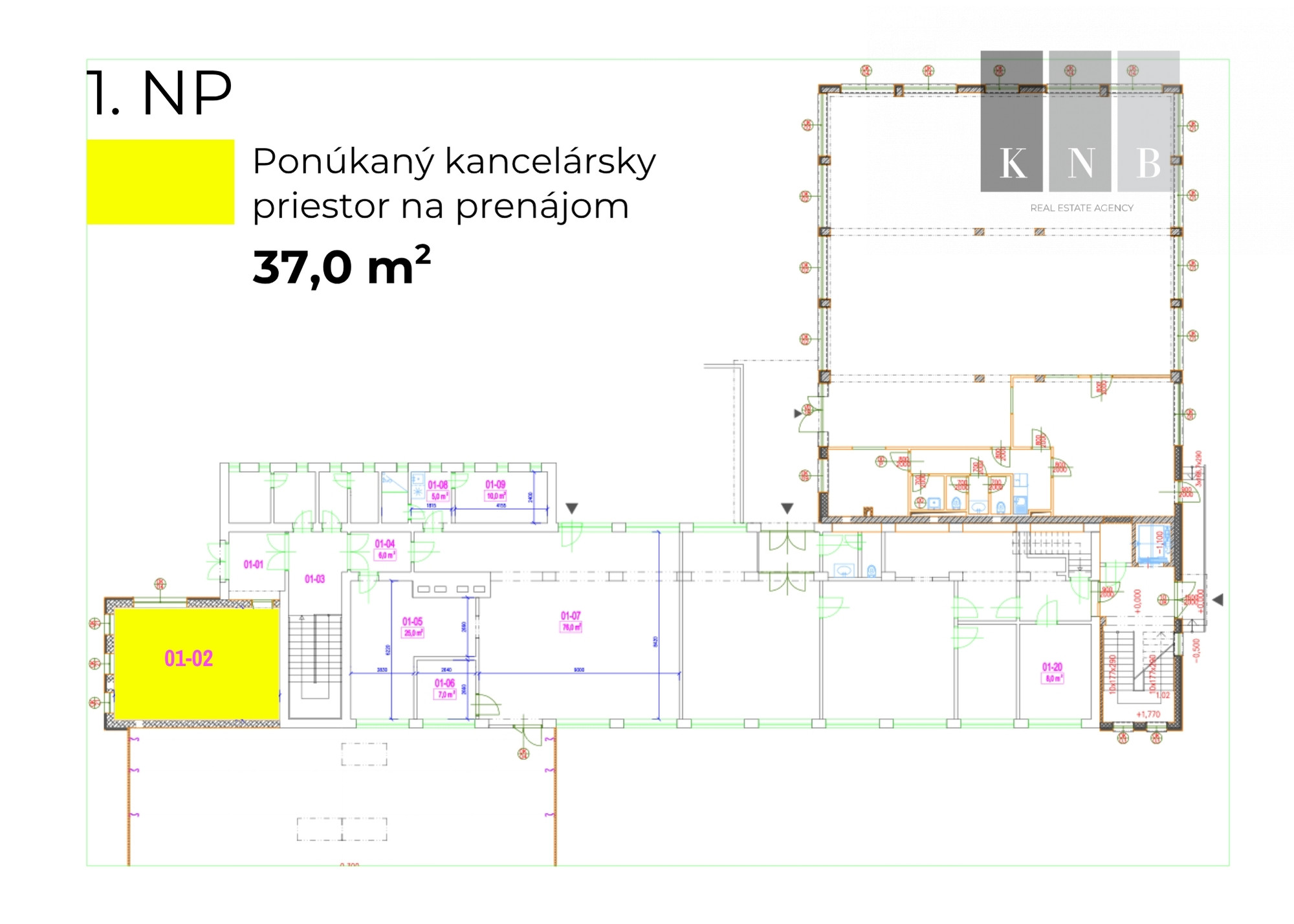 Ground floor : office 37,0 m² (see floor plan, office no. 01-02)