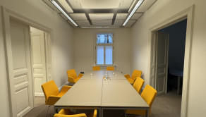 • 1 veľká zasadacia miestnosť, ktorej súčasťou je samostatná a kompletne vybavená kuchynka