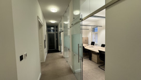 • Prístup na každé poschodie je zabezpečený systémom kľúčových kariet, uzamykateľnými protipožiarnymi sklenenými dverami a moderným výťahom Kone, ktorý obsluhuje suterén až po 3. poschodie, so schodiskom vedúcim na 4. poschodie