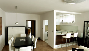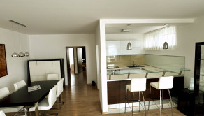 - The kitchen with a bar counter is fully equipped with high-quality appliances (dishwasher, induction hob, fridge with freezer, etc.)
