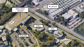 ➔ Vedľa obchodného centra sa nachádza čerpacia stanica SHELL ako aj kúpeľňové centrum ViVa.