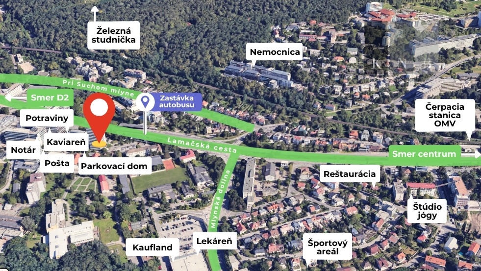 - Prenájom parkovacieho státia: 95 € bez DPH / miesto / mesiac
