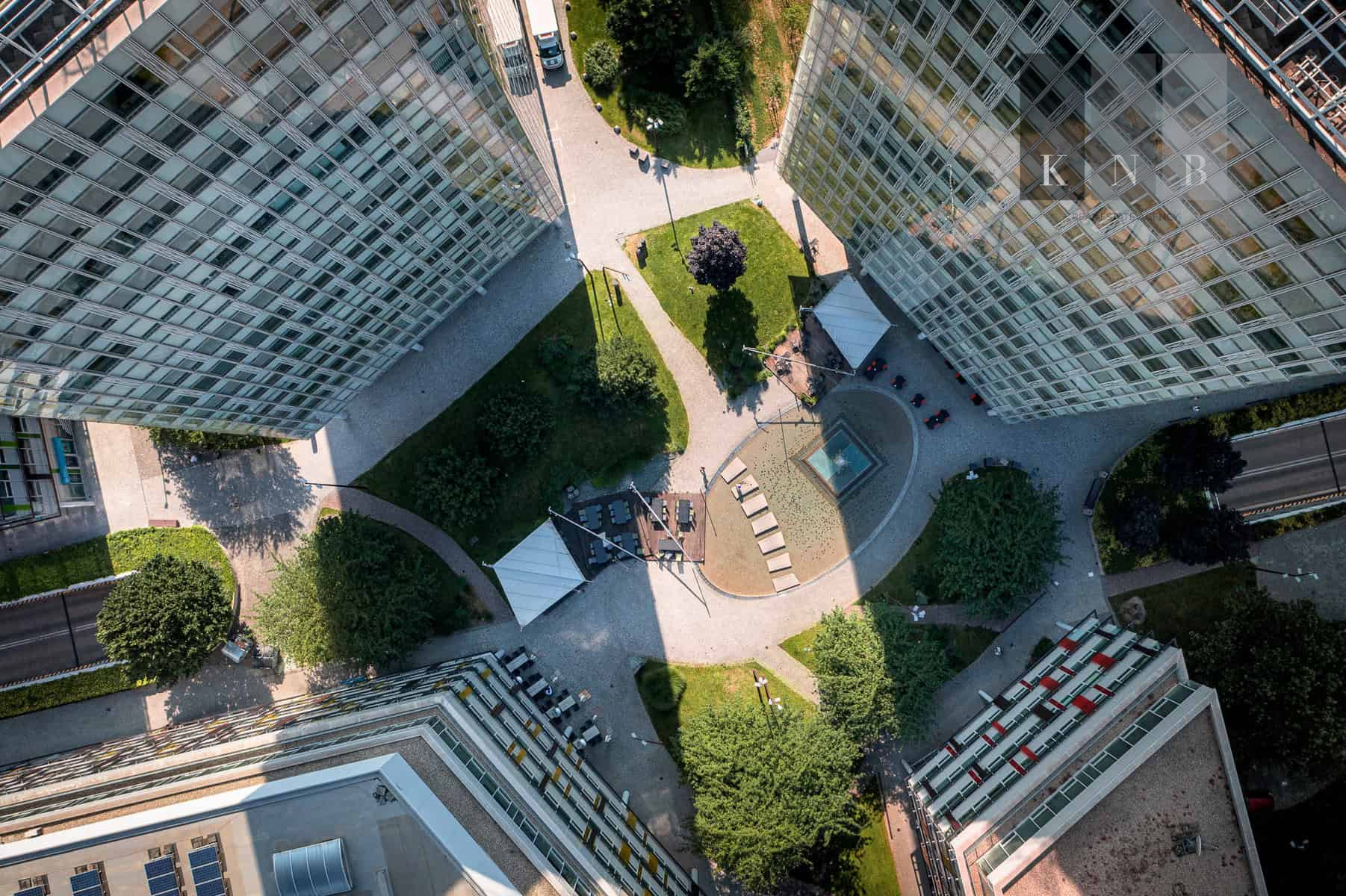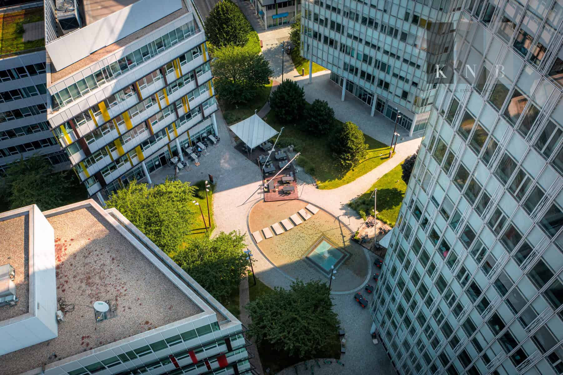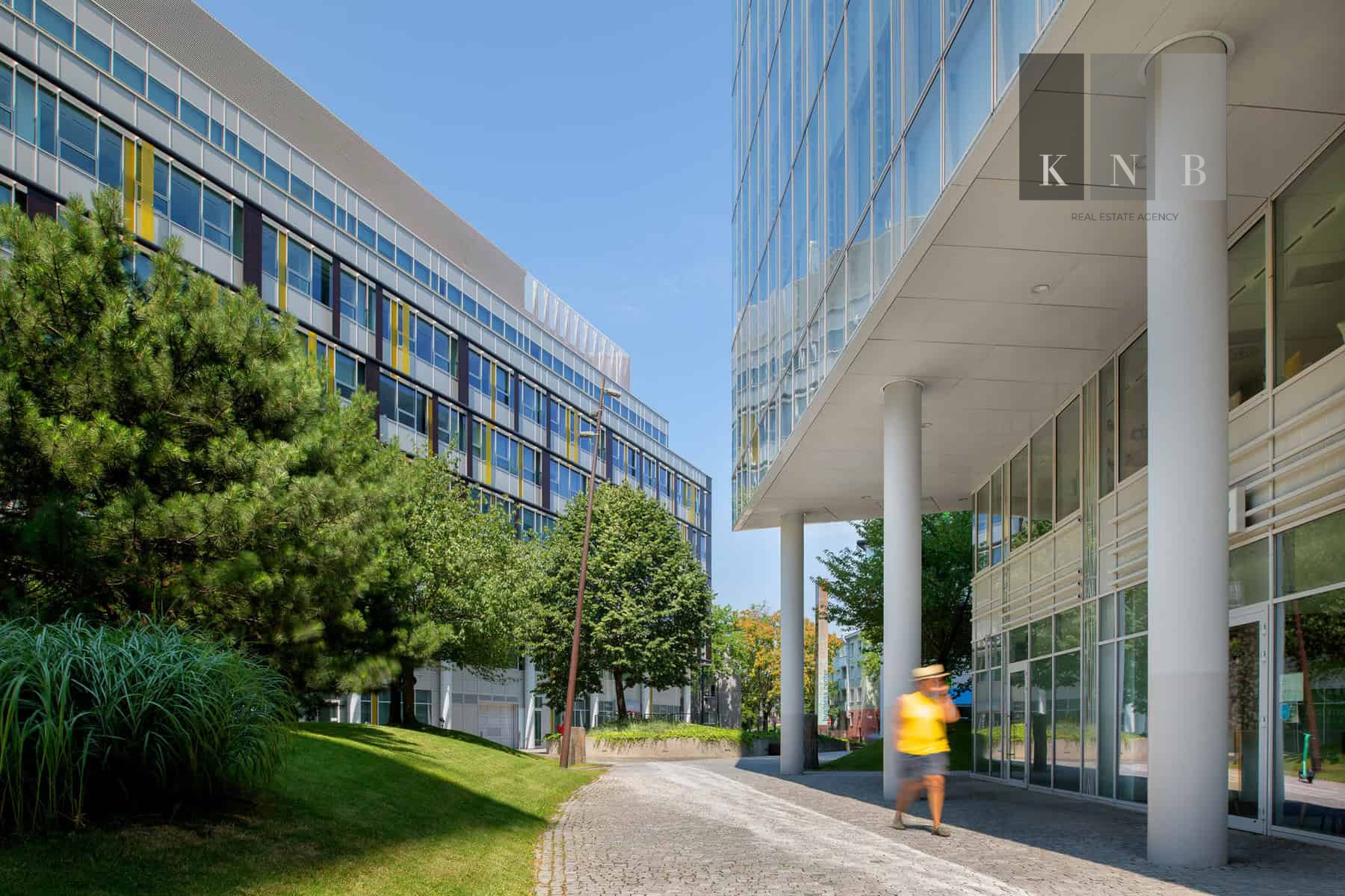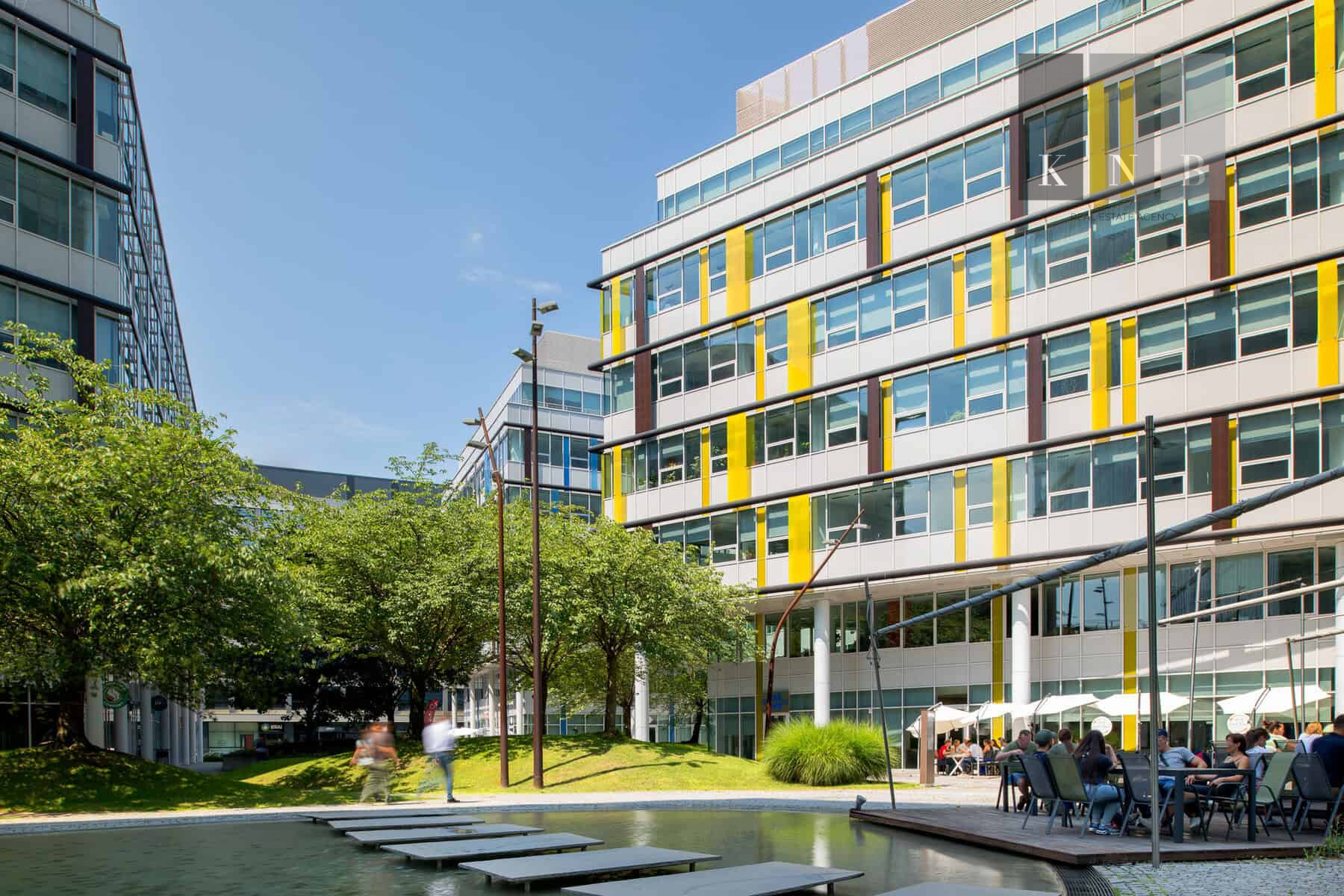 ➞ Z priestoru je výhľad do zeleného vnútrobloku, ako aj na okolité budovy Apollo BC II.
