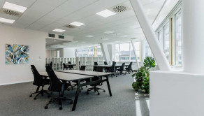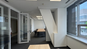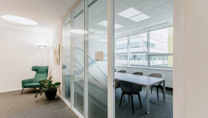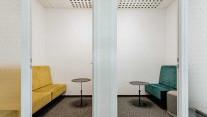- 4 samostatné odhlučnené focus rooms (miestnosti na telefonáty / stretnutia)