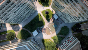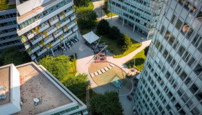➞ Z priestoru je výhľad do zeleného vnútrobloku, ako aj na okolité budovy Apollo BC II.