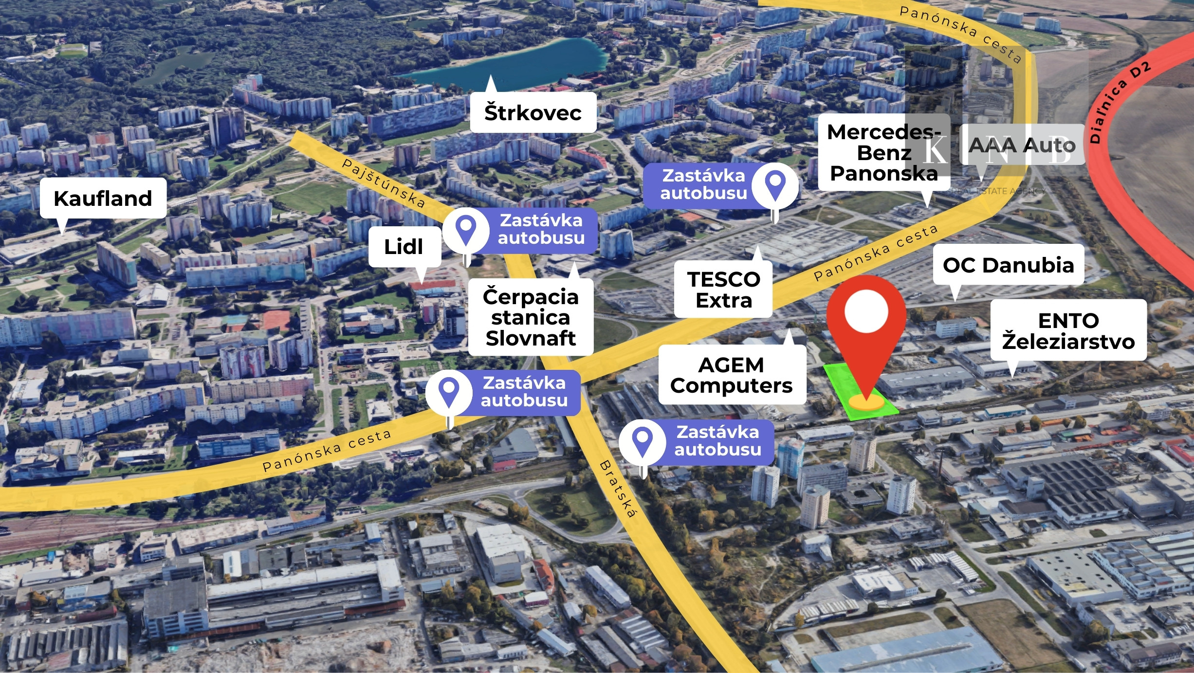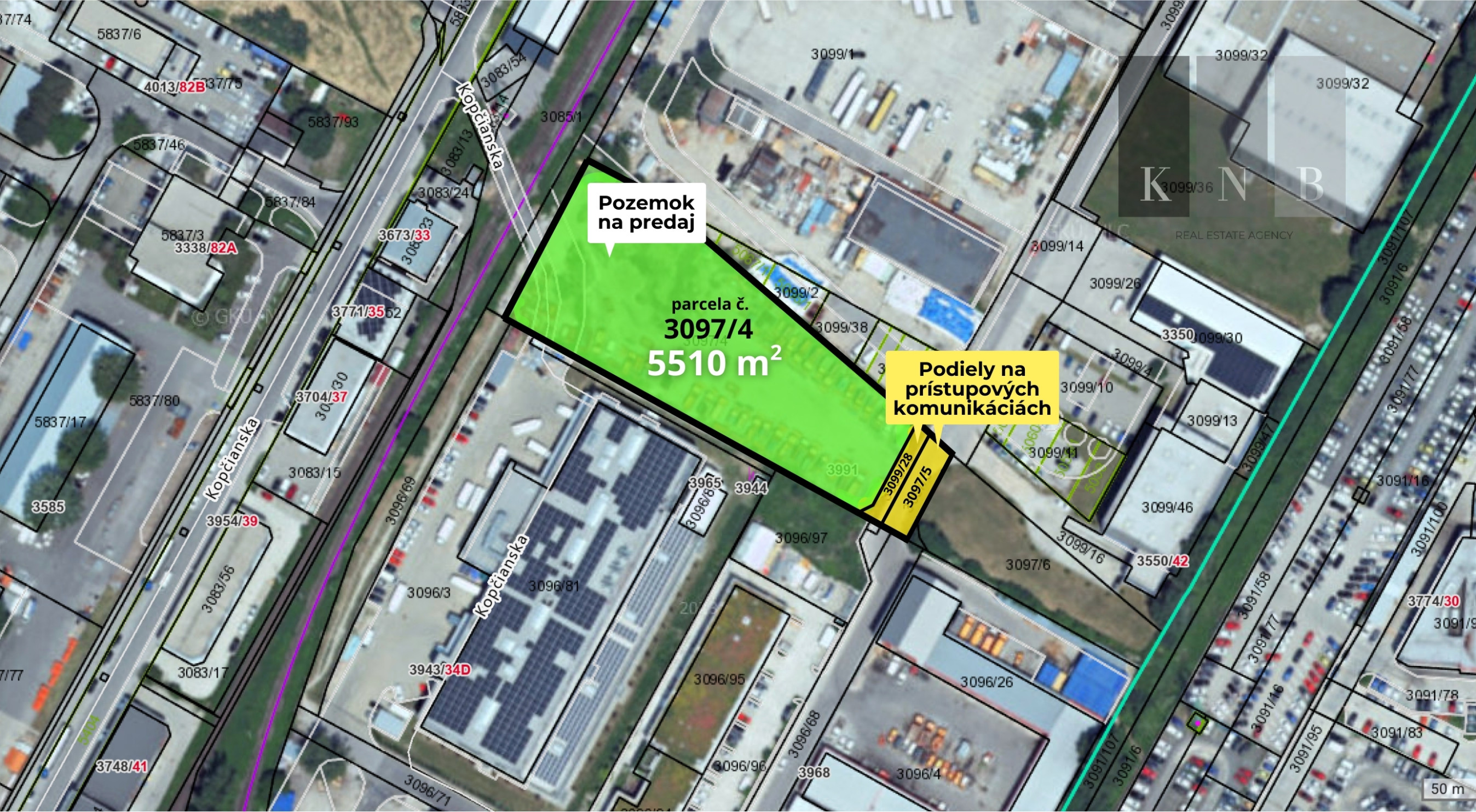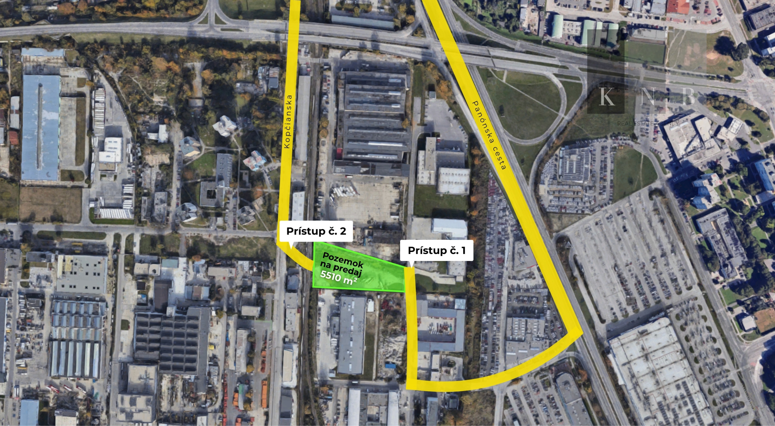 Jedná sa o pozemok o výmere 5510 m2, ktorý má prístup z ulice Panónska cesta a taktiež Kopčianska. Súčasťou predaja sú aj podiely na prístupových komunikáciách.